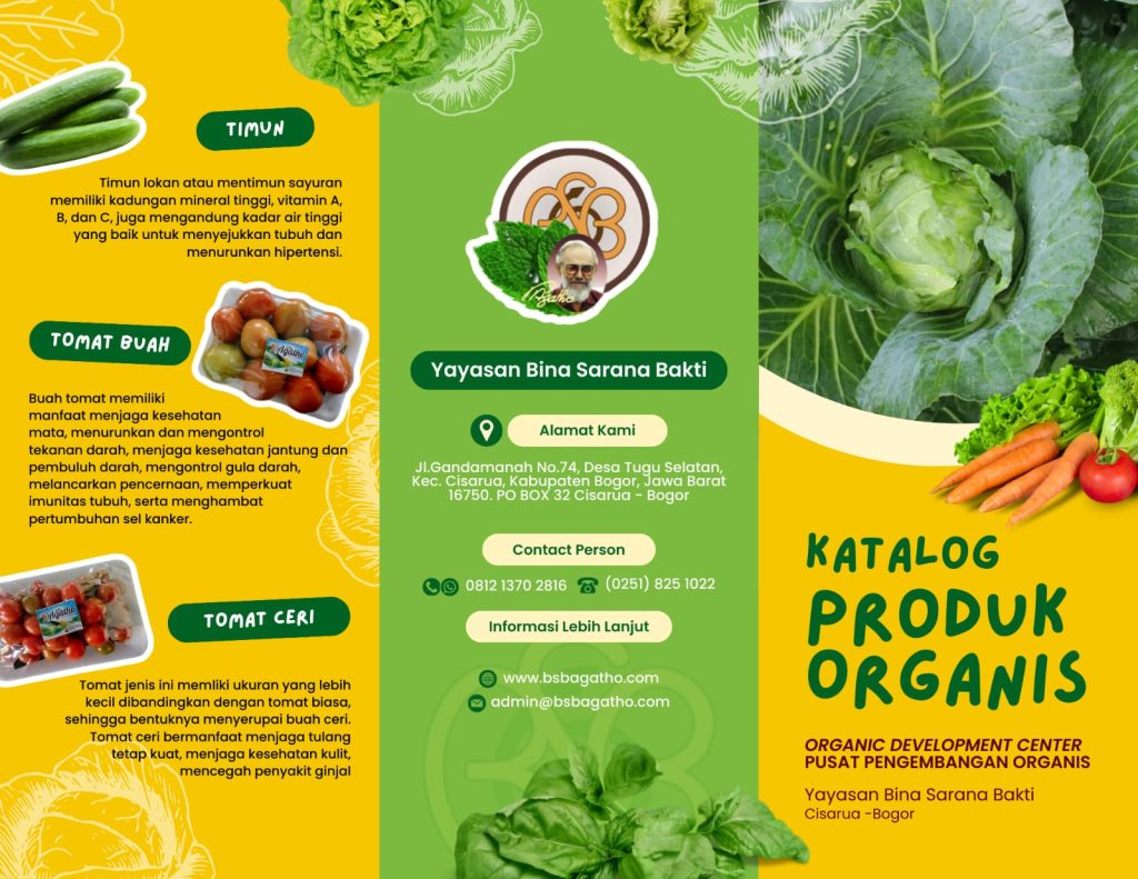 Yayasan Bina Sarana Bakti adalah pusat pengembangan organis. Yayasan yang bergerak sebagai Pionir Organis yang didirikan pada tahun 1984 oleh Pater Agatho Elsener, Yayasan ini berdiri dikarenakan keyakinan akan penelitian bahwa masalah pertanian di Indonesia itu bukan didasari faktor teknis melainkan sikap manusianya namun seringkali  dampak negatif yang ditimbulkan oleh manusia egois yang hanya mencari secara ambisi untuk mencari  kesenangan dan mementingkan sebelah pihak maka perlu tindakan organis diarahkan pada kesederhanaan,kemandirian untuk saling bekerja sama tetap menimbulkan solidaritas bagi semua.