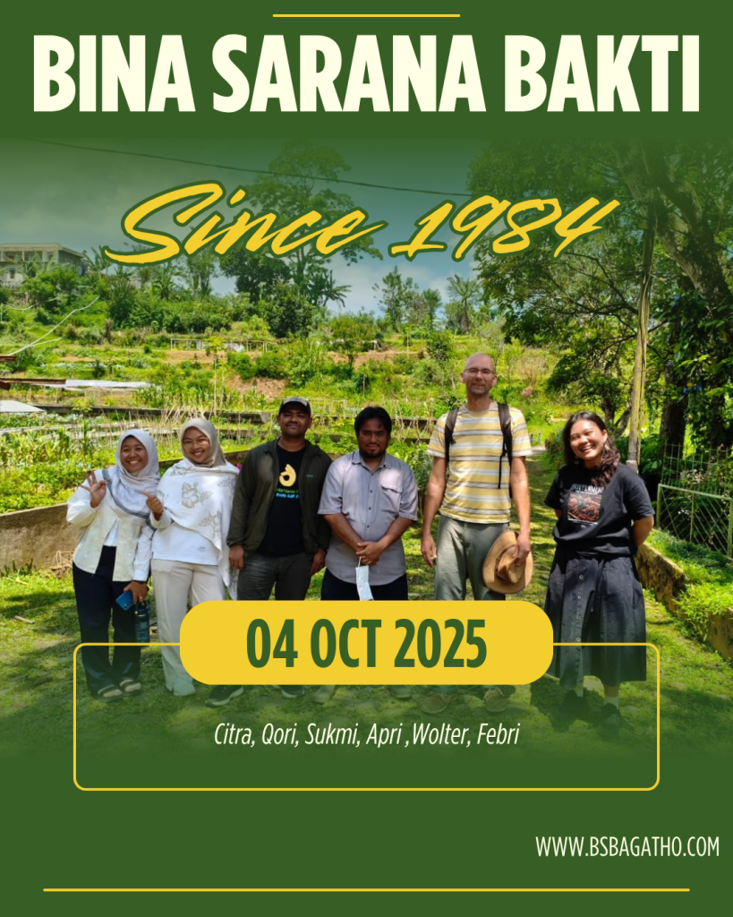 Teman-teman jejaring Aliansi Organis Indonesia (AOI), mengajak Markus Wolter (Misereor) untuk wilayah Asia, mengunjungi Bina Sarana Bakti yang berdiri sejak 1984. Dalam kunjungan ini, kami berdiskusi mengenai bagaimana kendala dan juga solusi dalam menjalankan pertanian berkelanjutan khususnya organik. Apri menggambarkan terkait makna organis, dimana setiap organ saling membantu dan mendukung satu sama lain untuk menjadi organisme (makhluk hidup).
